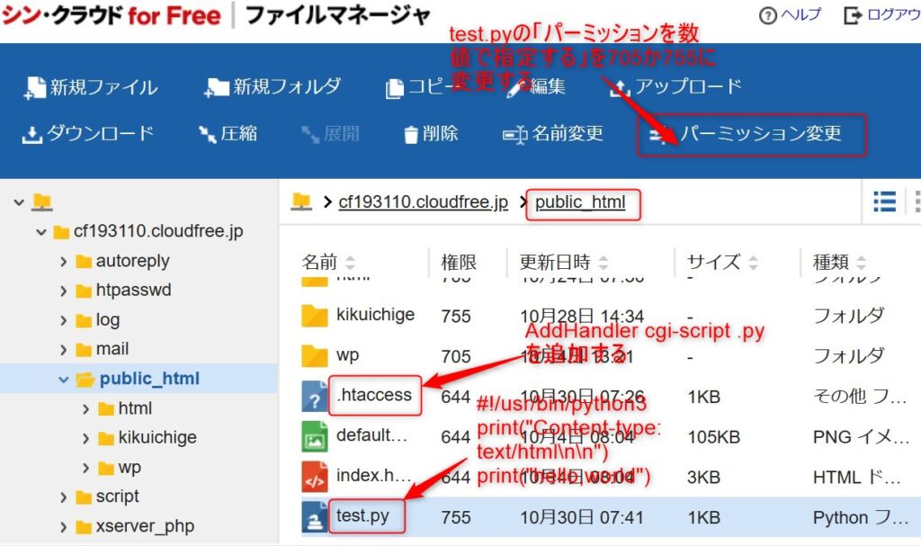 シンクラウド for FreeでCGIを使ってPythonを動かすには、