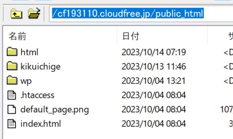初期ドメイン(私の場合cf193110.cloudfree.jp)とSSLのフォルダが出る。
