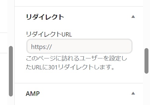 リダイレクト用の投稿記事の編集画面でサイドバーの投稿タブの下の方のリダイレクトにリダイレクト先のURL②を入れます。
